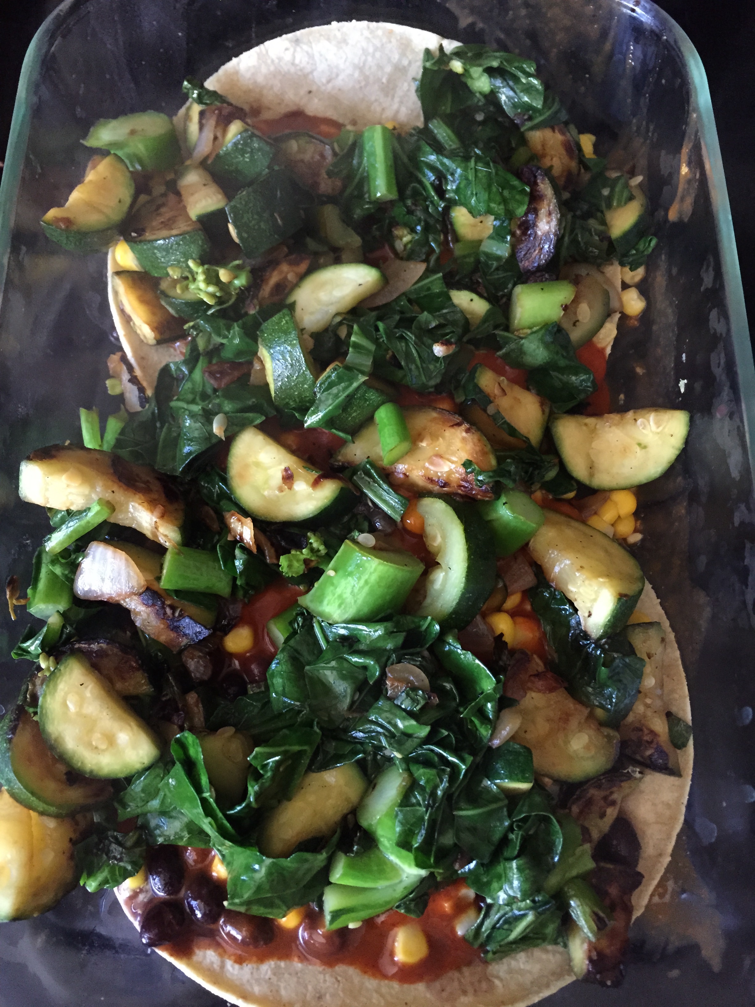 Pour veggie mixture on top.