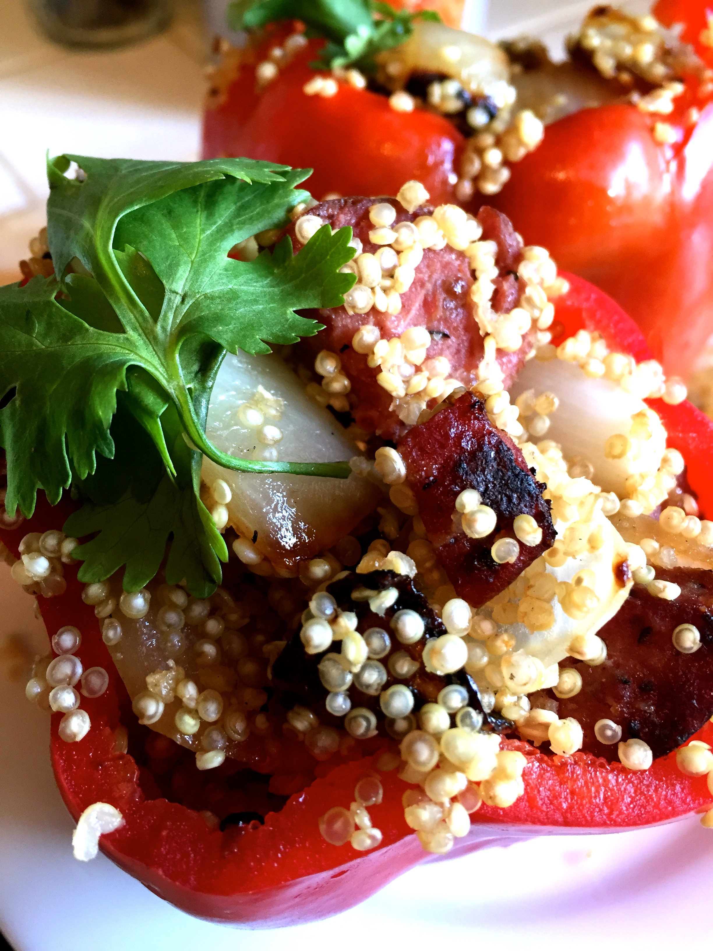 Quinoa Kielbasa Stuffed Bell Peppers