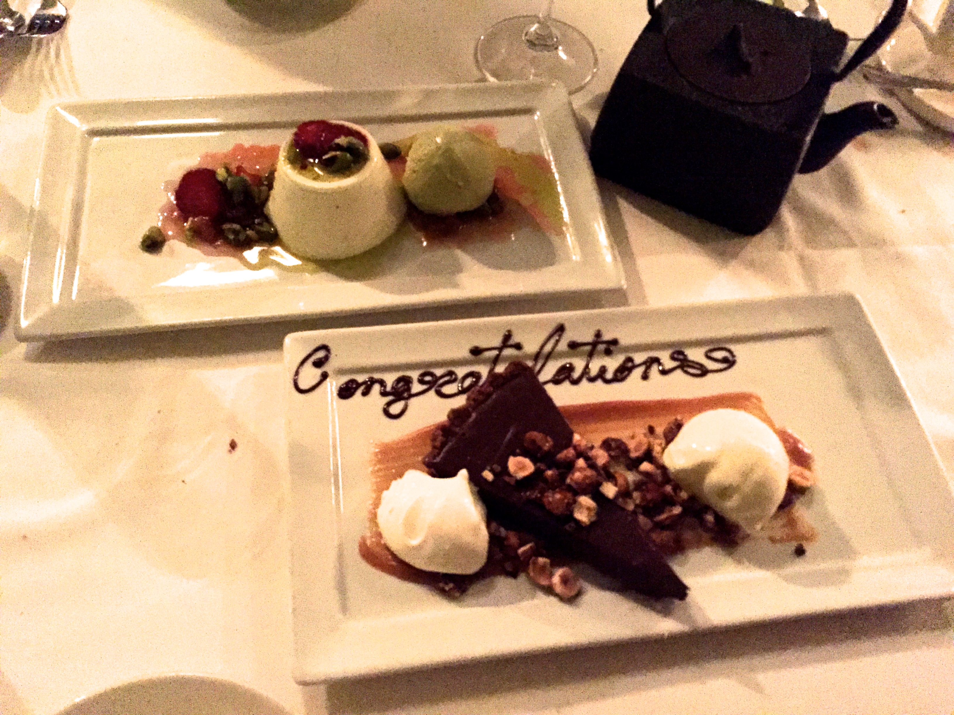 I came here on my college graduation night with my family. The servers are very attentive. The owner actually checked in on us and asked how our meal was. We ordered the scallops, the halibut, the market fish, and the lamb. For dessert we ordered the chocolate tart with espresso hazelnut and cardamom ice cream and the shortcake with pistachio ice cream. The food is decent but not the best I’ve tasted in that price range. Recommend: the scallops and the halibut. Atmosphere: elegant, sophisticated. (4 taste, 4 atmosphere, 5 service)