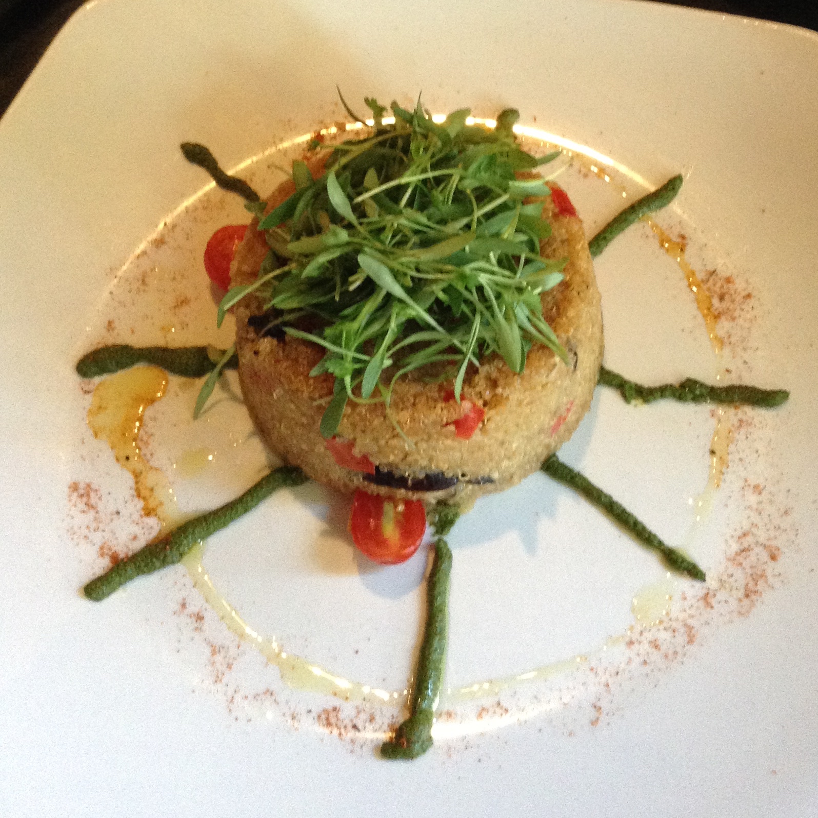 Kreation (Santa Monica) 100% organic Middle Eastern cuisine. They offer an array of brunch dishes, tapas, desserts, and juices. I think their tapas are the best items on the menu. I recommend the ash soup, the eggplant dip, and the hummus. The soup is extremely hearty filled with veggies, beans, quinoa, and a dollop of yogurt. For breakfast I recommend the oatmeal almond pancakes and the Mediterranean plate. The pancakes are filling but do not feel unhealthy (check check out my pancake recipe here). (4 taste, 5 atmosphere, 5 service)