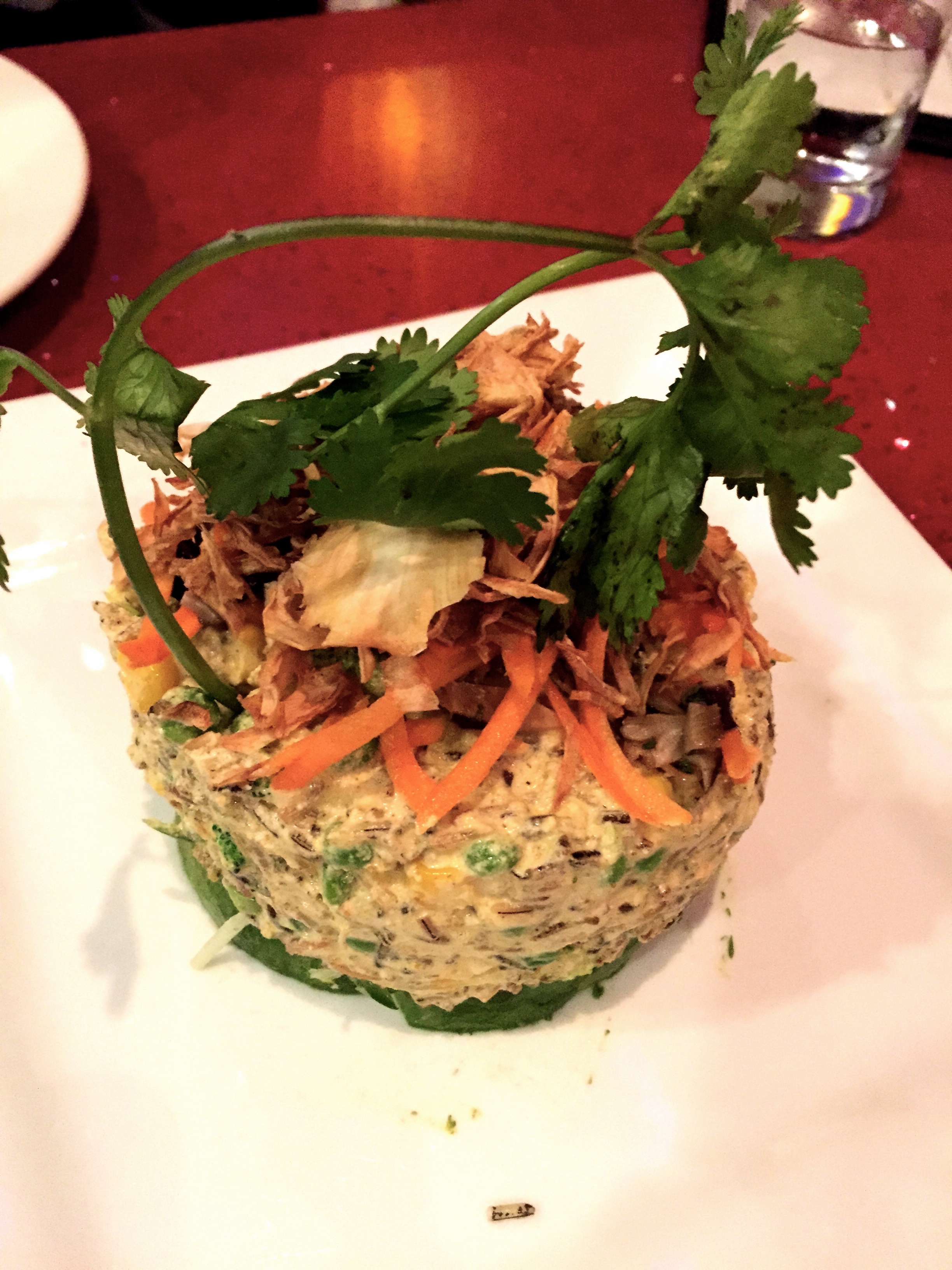 They specialize in Vietnamese/Chinese raw food but also have vegan and vegetarian options. The atmosphere does not match the price of the food; however, the eloquently prepared raw entrées belie the cheesy Chinese décor. The servers are very attentive. Our waitress gave us extra peanut sauce for our leftovers. They serve free filtered alkaline water (at Pressed Juicery it’s $2.50 a bottle). I recommend the steamed jicama rolls with peanut sauce, “cream cheese” and flaxseed crackers, curried rice, kelp noodles chow mein, and the tiRAWmisu. (5 taste, 4 atmosphere, 5 service)